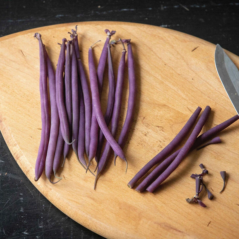 Very vigorous at the seedling stage. Pods are lavender on the outside (yellow on the inside) and easy to locate on the open-habit plant. Pods average 3 1/2–4 1/2″ long and 1/4″ in diameter. Slightly sweet and nutty flavor. Bush bean. Plant Variety Protected. USDA Certified Organic.