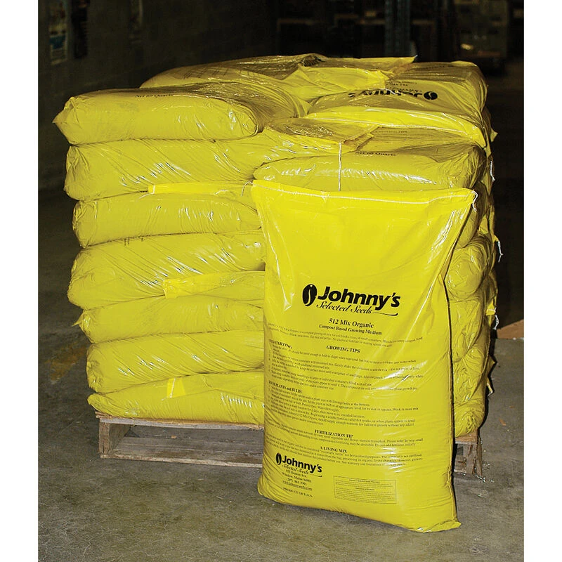 A custom mix of humus (black) peat moss, sphagnum peat moss, compost (composted poultry manure and by-product, hardwood shavings/sawdust, elemental sulfur; crop residue, and/or seaweed), horticultural perlite, fish meal, and seaweed meal. A great option for growing seedlings in cell trays and soil blocks with ample nutrients to carry most plants from seeding to transplant. Approved by MOFGA for use on MOFGA certified-organic farms. Available in three sizes. NOTE: This size consists of 27 individual 60-qt. bags on a pallet. Ships via truck.