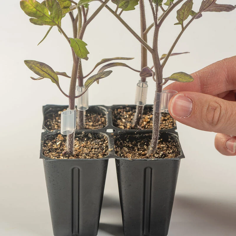 Preferred by the Johnny’s research team. Flexible, food-grade silicone provides even pressure. Tube-shaped channel for use with support stakes (sold separately). 2.8 mm opening. Choose from three sizes for different stem widths. Pack of 200.